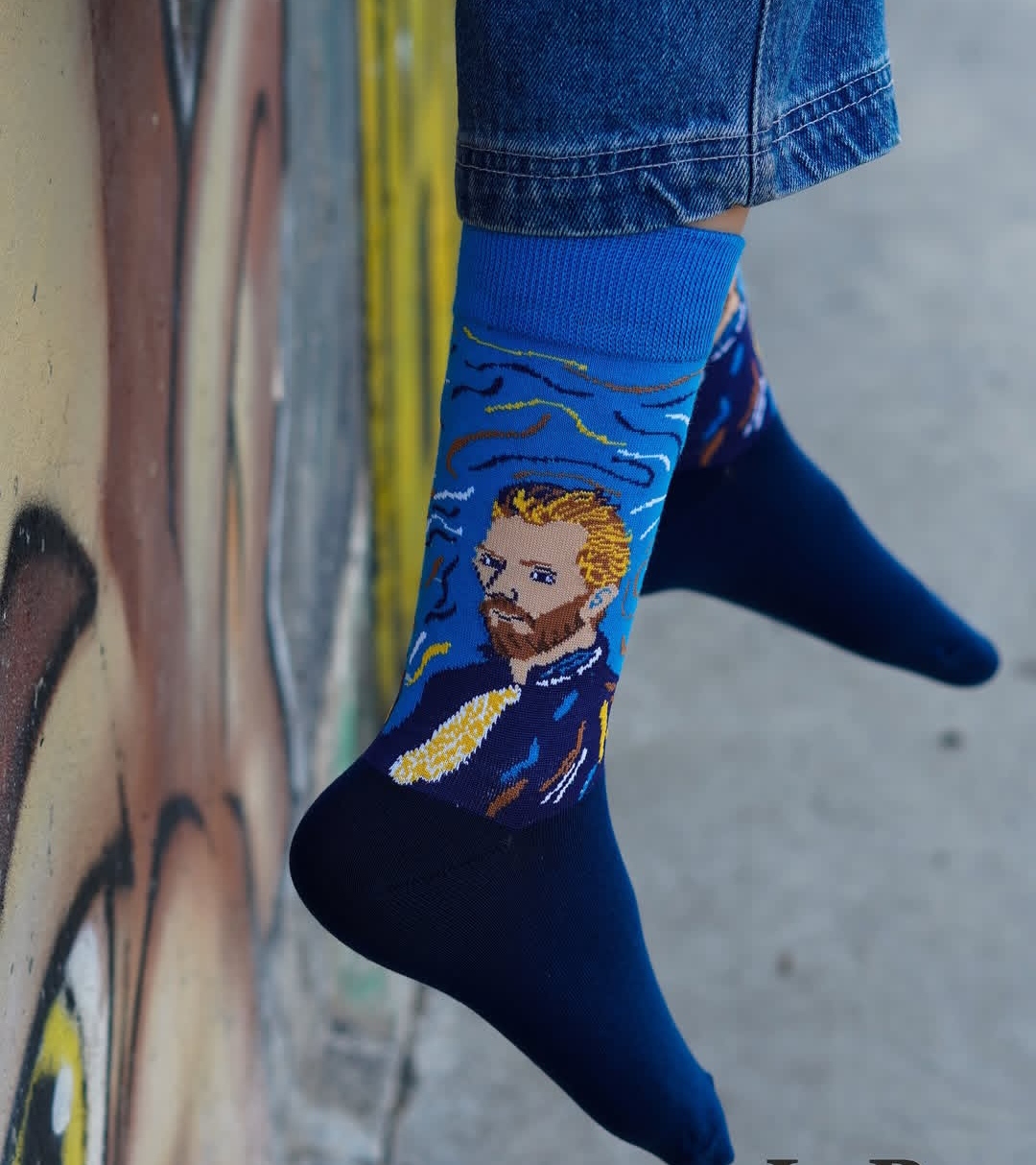جوراب ساقدار نخ پنبه جوراب نقاشی ونگوک جوراب هنری سوپر پنبه سایز 44 تا 36