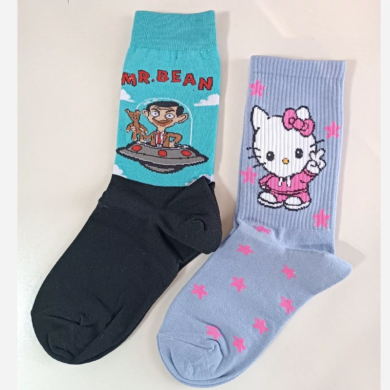 جوراب کرومی ساقدار جوراب انیمه جوراب ساقدار طرحدار پنبه اعلا سایز 44 تا 36