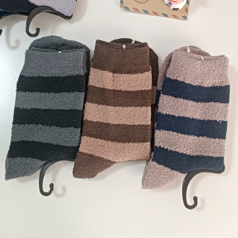 جوراب حوله ای مردانه راه راه جوراب گرم زمستانی وارداتی