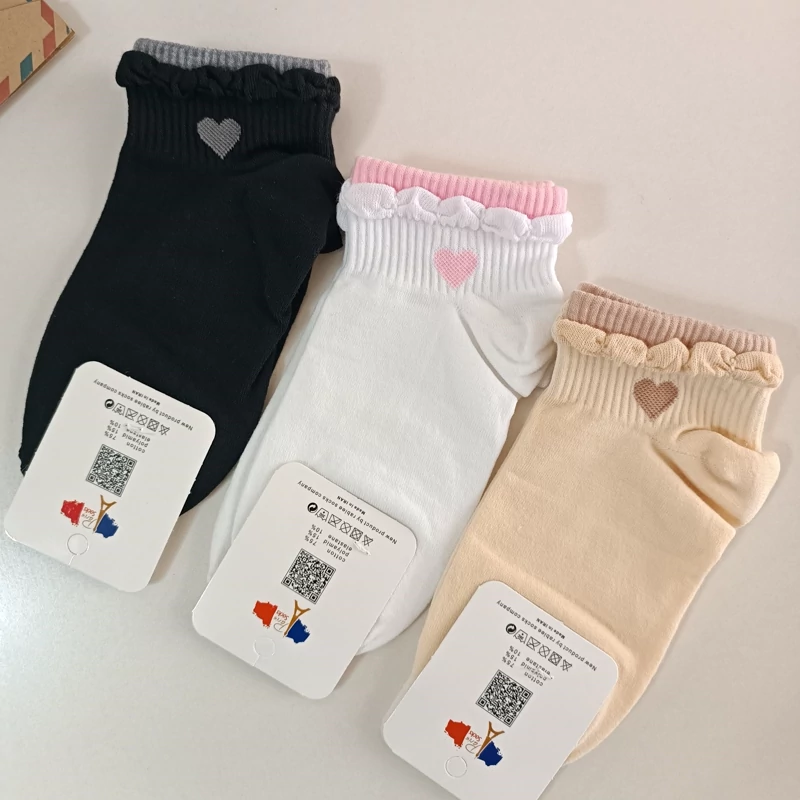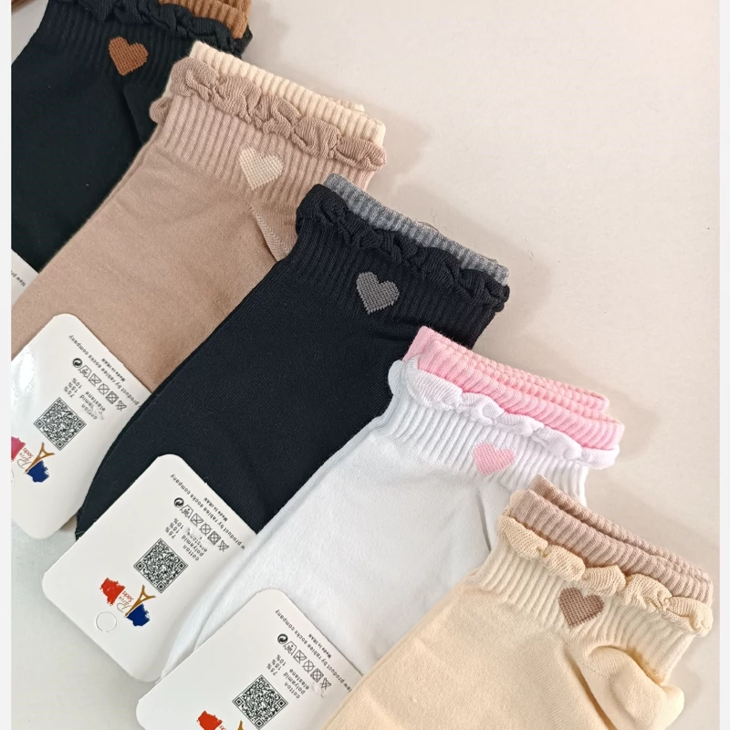 جوراب قلبی جوراب مچی زنانه جوراب لبه چین دار نخ پنبه سایز 42 تا 36