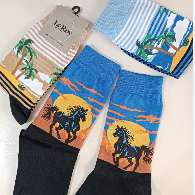 جوراب ساقدار طبیعت جوراب طرح اسب پنبه اعلا سایز 44 تا 36