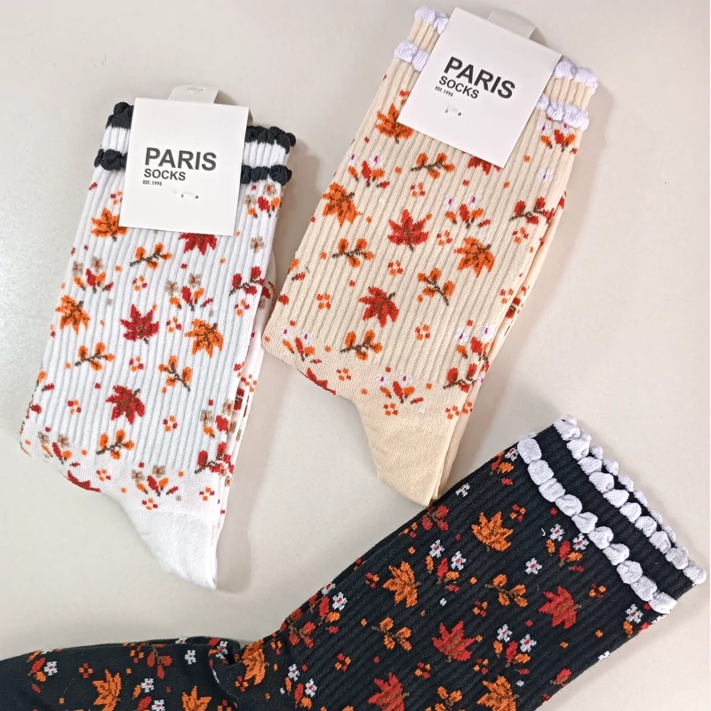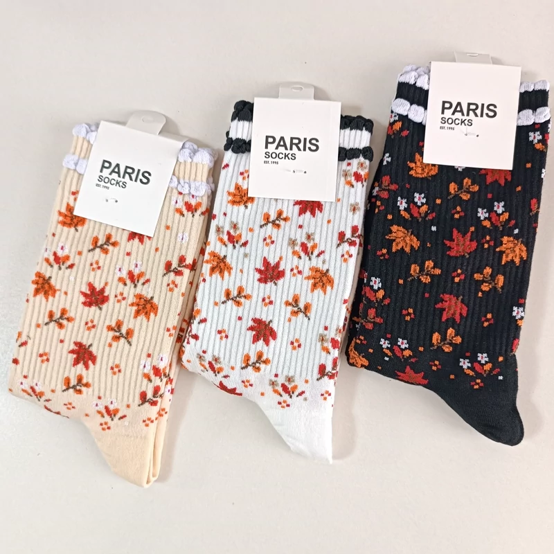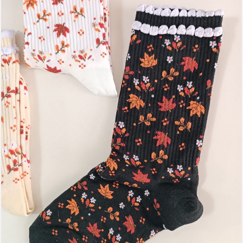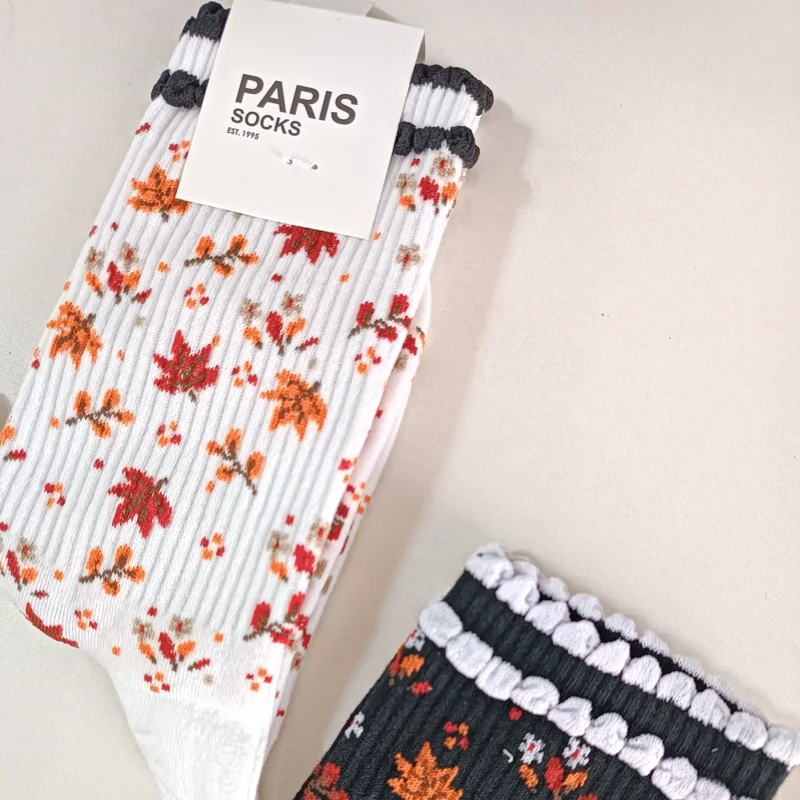 جوراب ساقدار جوراب برگ پاییزی جوراب ساقدار زنانه پنبه سایز 42 تا 36 جوراب طرح برگ